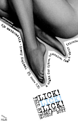 Billed as a party for “dykes, trannies, fags and their friends” the event made headlines back in December in Sound Magazine when they held what everyone thought would be the last party. This last May, by popular demand, up from the ashes came “Lick’s Not Dead!” and now the 2nd Lick! party of the year is this Saturday.