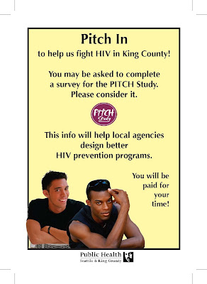 The PITCH team will recruit participants around the Seattle area for the next several months. Look for their 30 foot RV at some of your favorite spots in town (bars, clubs, special events, gay nights). This is where the survey will be conducted. People cannot volunteer for the study. Please consider participating only if you are invited.