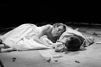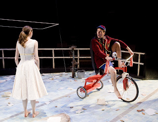 Eurydice (Renata Friedman) and Orpheus (Trick Danneker) are wonderfully in love and the play starts out so magical with two young people in love. Everything and nothing has meaning to these young lovers. The set is minimalist with strings placed around the stage, much like harp strings when plucked musical sounds are heard. Marriage is planned and Eurydice’s dead father makes his first appearance to wish her well. Mark Chamberlin’s role as the father is well done and ties the story together.