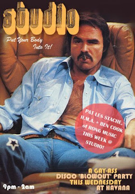 Studio! Gay-Ass Disco Party at Havana is TONIGHT Wednesday October 29th with resident DJs Pat Les Stache, H.M.A. and special guest DJ Ben Cook, owner of Rong Music, will be spinning another dose of rare 70’s gay disco, italo, mustache, and cosmic grooves. Last week’s ‘Arthur Russell Tribute Night’ was a lot of fun so don’t be lazy and come out for the best disco night in town!