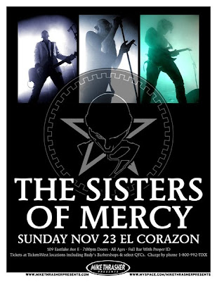 I just noticed one of my favorite bands from the past, The Sisters of Mercy is coming to Seattle on Sunday November 23, 2008. The English goth-rock band performs industrial type music and emerged from the British post-punk scene nearly 30 years ago performing all the way up until 1994. The show includes the groups perennial singer and songwriter Andrew Eldritch along with their signature drum machine Doktor Avalanche.