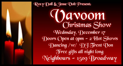 Vavoom Christmas Show tonight at Neighbours Nightclub. Vavoom is the weekly tranny night at Neighbours with music by DJ Trent Von and hosted by Roxy Doll & Jesse Volt. Show at Midnight.