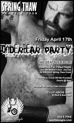Tonight features an UnderBear Party at Seattle Eagle. Don’t miss the Furnace Party at Cuff on Saturday featuring a special visit from DJ Pete Savas.