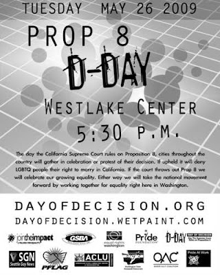 The date has finally come. The California Supreme Court will issue its decision about Prop 8 TODAY, Tuesday May 26, 2009.