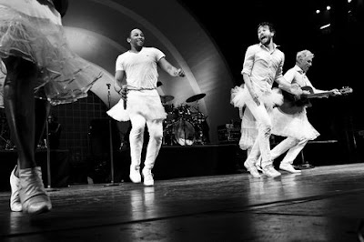 Since I feel like looking back, here is David Byrne over 30 years ago in a live performance of Psycho Killer with Talking Heads: