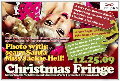 Tonight, Friday December 25, 2009 is Christmas Fringe at Seattle Eagle: Saving Seattle Nightlife in supporting the new City Attorney Pete Holmes and Lifelong AIDS Alliance.