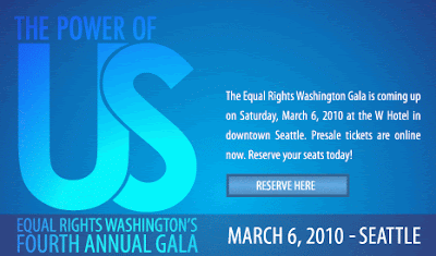 Every year that Equal Rights Washington has held their Gala fundraiser it has sold out. Saturday, March 6th, 2010, the organization that help pass Ref. 71, an achievement of epic proportions, will be hosting “a celebration of epic proportions!” at the W Hotel in downtown Seattle.