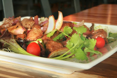 One of their most popular items are their Drunken Crispy Chicken, which is marinated overnight in a rich chardonnay and finished with a caramelized soy glaze. Another popular item is the Cognac Luc Lac Beef; cubes of Fillet Mignon woked with red onions, butter and finished with a French Brandy on a bed of organic spring greens for $13.95. The many choices of large bowls of noodle soup or grilled meat in either a dry noodle bowl or on top of a rice platter, with up to four kinds of meat, will run you around $8. Even the most expensive entrees are priced between $10 and $15.