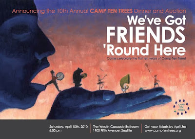 The 10th Annual Camp Ten Trees Dinner and Auction is coming on Saturday April 10, 2010. Titled “We’ve Got Friends ‘Round Here” the event at Seattle’s Westin Hotel celebrates the first ten years of Camp Ten Trees.