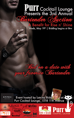 The popular “Bartender Auction” returns to Purr Cocktail Lounge on Wednesday May 19, 2010. It’s a night of bidding on bartenders from all the neighborhood bars and the bidding begins at 8pm. Hosted by Latrina Bidet. The first Bartender Auction in 2008 raised nearly $12,000 and lots of attention. See this report.