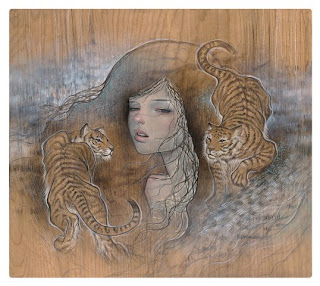 If you’re an art lover, you also have an embarrassment of riches to choose from. The HUUUUUGE new Kurt/Warhol exhibit has opened at the Seattle Art Museum and it’s an eye (and ear) full of delights. I got to go to the press launch on Tuesday, and I was blown away by it…a full report/preview will be coming soon. And, if you’re looking for a lower key show to attend, then check out my favorite gallery in town, Roq La Rue, 2312 2nd Avenue in Belltown, the Seattle center for the Pop Surrealist movement. Curator/Dealer Kirsten Anderson has an exciting new group show opening tonight, “Tiger, Tiger Burning Bright” a show based around the theme of tigers, inspired by the poem, “The Tiger” by painter/poet William Blake. Artists represented in the show include Audrey Kawasaki, Isabel Samaras, Robert Burden, Anthony Ausgang, Yumiko Kayukawa and many more. The opening reception is tonight, Friday, May 14 from 6pm to 9pm.
