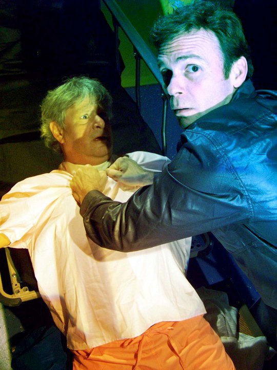 As for Catherine Kettrick’s mother, Andrene and Enrique Olguin’s Larry, I think both performances suffer from a lack of nuance and shading; neither actor seems willing to play the unlikeable sides of their characters. Ms Kettrick’s Andrene is a little too sweet and vague; I currently know someone suffering from dementia and people coping with dementia and senility and Alzheimer’s are not universally placid and pleasing; they are also demanding and rude and unpleasant and unless they are in the end stages of dementia, they are also frequently very lucid and sharp, for brief moments. The text of this play clearly indicates that Andrene DOES have moments when she is very lucid and moments when she is bitchy and not very nice but Ms Kettrick, and the director, seem to pull back from playing any extremes of the character; it’s a bit one note…much like Enrique Olguin as Larry, the caregiver and ex-lover of Derek. Larry seems to be a nice guy in the beginning of the play, and the rightfully aggrieved dumped lover who deserves his right to feel bitter towards Derek, but Larry is also guilty of taking advantage of the sexually confused younger man and even more guilty of conning his senile charge, Andrene out of her life savings. But, Mr Olguin seems so intent on trying to perform the correct Scottish accent that the performance suffers. It’s a bit dull and fades in comparison to the performance by Shaun Carroll’s Derek; frankly the performance needs to be a bit bigger and gayer and a little more obviously mercenary. We need to see more shadings of this complicated character.