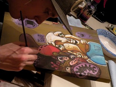 I had planned on Keefee lasting until about 10pm so I left the Rendezvous with some time to kill but fortunately there was an art show across the street at City Hostel, (2327 2nd Avenue) being run by the cute kids at S3A, “a group of artists and galleries committed to raising awareness of the alternative art scene in Seattle…” The show was HOT and a great fit for Belltown being close to Roq LaRue and the whole Juxtapoz art vibe scene that is so hot right now. And the show was full of great, fresh art from talented young artists at reasonable prices…I wish I had heard about it sooner, so I could have plugged it on here. And, I was rather proud to see new work by an artist that I had used in a show at the LGBT Center, the young artist known as CASH. CASH wasn’t gay but he submitted his stuff to me and I liked it and snuck it into a show (my motto was, if you’re willing to SHOW your work in a queer space and you’re gay friendly, then you’re worthy to be accepted). I also saw work by the very talented Jonathan Wakuda Fischer, who also had pieces in the Seattle Erotic Art Festival and Augie Pagan who has a big show coming up at the Upper Playground Gallery on the Ave in the U-District starting May 21. Bookmark these websites and keep tabs on what these artists are up to…I know I will.