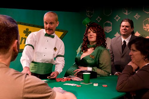 Stephen Hando, center, in blackjack dealer mode in still from last year’s production of Keefee at Theatre Off Jackson.