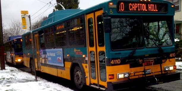 After that odd moment, I finally made it to Pike Street, and as luck would have it, a #10 pulled up right in front of me. I got on the bus and right behind me were a couple of 17 year old kids, one of whom had a song and dance story about giving his bus pass to a friend, ’cause he hurt his leg on his board and needed to go to the emergency room and he didn’t have any money and he had to get home and…at that point the weary lady bus driver just waved him and the two kids and I both went and took seats at the back of the bus. We then head up Pike and stop at the next stop and more people get on, including a mid-30’s black guy in coveralls looking like he just got off of a construction job who sat down across from the two skate board kids and to my right. We waited a moment, but the bus didn’t start moving and then the bus driver announced, “The guy who got on the bus without paying needs to come up and pay or get off the bus.” Well, the two kids thought at first she meant THEM, but then the bus driver repeated herself, this time adding “the guy who JUST GOT ON THE BUS” and the kids thought they meant the 30ish black guy sitting near us and he started getting huffy because he said he HAD paid. But then we noticed a hubbub towards the front of the bus where a tall, 30ish, white, vaguely-kinda gayish guy had taken it upon himself to confront the ACTUAL deadbeat culprit, a bundled up, out of it hobo type guy. Mr Take Charge Guy got up from his seat, walked over to where the Hobo-Culprit was sitting, hauled the Culprit to his feet and started escorting him to the door, not really roughly but firmly, and saying “Man, if you can’t pay, you gotta get off the bus” and the Culprit didn’t fight back but just mumbled and shuffled along and things seemed fine until Mr Take Charge Guy got the Culprit to the back door, which the driver had opened, and then proceeded to give the guy a shove off the bus! The befuddled Culprit landed on the ground and began moaning, the rest of the bus was just shocked and the black guy next to me got PISSED and started cussing, “What the fuck was that? Why’d he have to shove that guy?!?!?” Well, Mr Take Charge and the bus driver, (who shouldn’t have let this happen) went out to check on Moaning Culprit, who frankly probably wasn’t actually injured as his moans were extremely fake sounding, like a 5 year having a phony tantrum to get attention. Everyone on the bus began yakking away, the skateboard kids thought it was all pretty funny and Outraged Dude was furious and wanted to confront Mr Take Charge for being so aggressive but started telling himself, “Man, I can’t get involved; I’m on parole! But, that shit ain’t right!” Eventually, the bus driver and Mr TC got back on the bus, (because apparently Moaning Culprit was fine, or more likely, they just didn’t want to deal with it), and we started moving up Pike Street. Obviously, everyone was still stunned by what had happened and Outraged Dude continued to bitch about the incident and the injustice of it and began relating a story about a similar scene that had happened to HIM a couple years back when he was in downtown Seattle with his girlfriend.