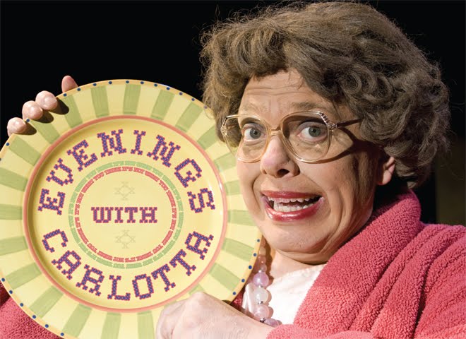 After digesting both the incident on the #10 bus and a quesadilla from Rancho Brava, I finally made it to the Annex and my 11pm date with Evenings With Carlotta starring Troy Mink and his popular and beloved character Carlotta Sue Philpott, a 70 year old Southern Fried Grandma now making her home in the Pacific Northwest. Mink has featured Carlotta in numerous shows over the years but she is usually surrounded with a supporting cast of zany characters and her “Late Night Wingding” shows took on the format of an improvised talk/variety show with real guests mixing it up with the Hee-Haw comedy characters. Not so with this latest incarnation of Carlotta. Ms Philpott is front, center and solely ensconced on the Annex stage as she invites us in to spend the night as her house guests for an evening of gossip, dance, Rice Kripsy treats, and personal (and sometimes painful) revelations about the early years of her life.