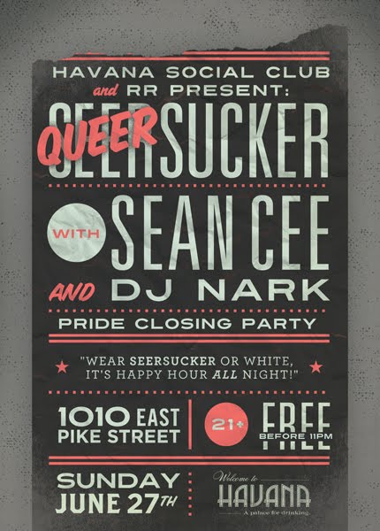 A special edition of the new hit Seersucker after its hit premiere last month! A beautiful mixer toss up of Capitol Hill combining guys, girls, straight and gay in one classy box. Nark disco blends up with booty shaking Sean Cee hip-hop! Dance it off. Pass out.