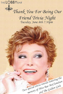 To pay tribute to the magic of Rue McClanahan and her portrayal of Blanche Devereaux on The Golden Girls and her sad passing last week, Lobby Bar is dedicating its weekly trivia night to Ms McClanahan and the other Girls with two video rounds of Golden Girls trivia on Tuesday, June 8 at 7:30pm at the bar at 916 E Pike Street. It’s only $3 per person and you can have 6 person teams, and the team at the end of the night with the most points, wins the kitty…I can’t make it that night, but if I WAS able to go, I would TOTALLY win that cat; I can quote lines from that show faster than Sophia Petrillo can organize an escape attempt from Shady Pines…oh, and there are food and drink specials available as well. Check it out and thank YOU for being my friend.