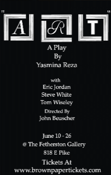 Reza’s Tony and Olivier Award winning play, Art established the French playwright as a major new theater voice that was only confirmed by the success of her next play, God of Carnage (at Seattle Rep next season) which added to her collection of Tony and Olivier awards. The story of three male friends and the reactions of two of the friends towards the other friend’s purchase of an all-white painting for a large sum of money, Art is a comedy that examines relationships between men as well as debating the age old question, “What is Art?” This production of the play is being staged by a new group (that doesn’t seem to have a website…really, it’s not that hard to create one!) that’s being staged at an actual art gallery, the Fetherston Gallery at 818 E Pike St right by the alley that leads to the Neighbors bar entrance. The show is running now through June 26 and you can get tickets HERE.