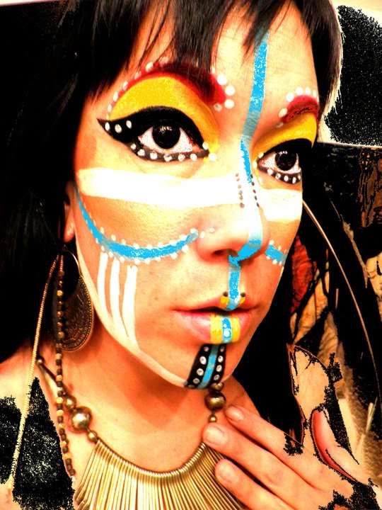 **ALISHA MAHONE** of Don’t Be Jealous make up, doing live voodoo/tribal/glitterific face painting behind the dj booth!