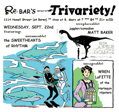 Hosts Simon Astor and Meg van Huygen bring you a night of cabaret and vaudevillian theater at Re-bar tonight at Trivariety at 7pm. What you can expect: