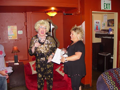 Sylvia O’Stayformore, Purr owner Barbie Humphrey and promoter Art Ruiz at the Purr “Thank You For Being A Friend!” fundraiser for the Susan G. Komen Foundation on Tuesday night.
