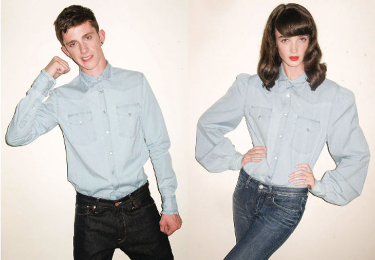 The hip, new trans lifestyle magazine Candy has teamed up with the hot, trendy, Swedish design firm Acne to produce a line of zexy androgynous blouses for guys/gals of all ages and gender identities. British Vogue has the story but it doesn’t mention WHEN these will be available but I’m guessing they’ll be on the Acne website and in their shops, (closest one to Seattle is in NYC). Oh, and the shirts are all named after “Dynasty” characters. You can choose from the “Krystle”, “Sammy Jo” and “Alexis” models…What, no “Sable”, “Dominque” or “Steven” to choose from!?!?!? What a rip-off!