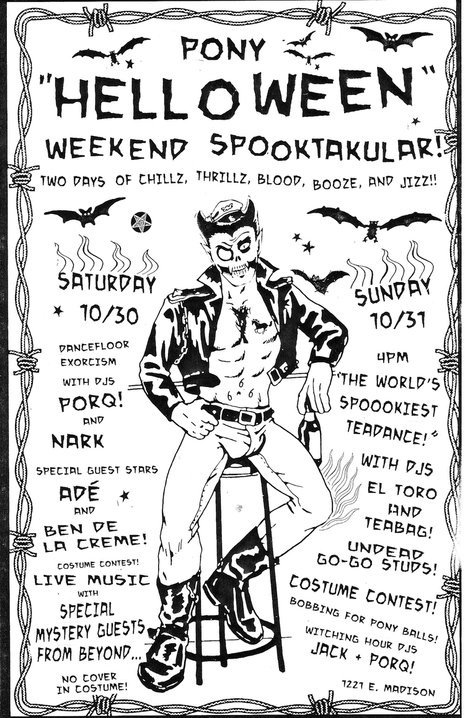 Pony: The World’s Spoookiest Teadance 4pm with DJs El Toro and Teabag. Costume Contest, Bobbing for Pony Oysters, Zombie G0-Go Studz and freakish drink specials.