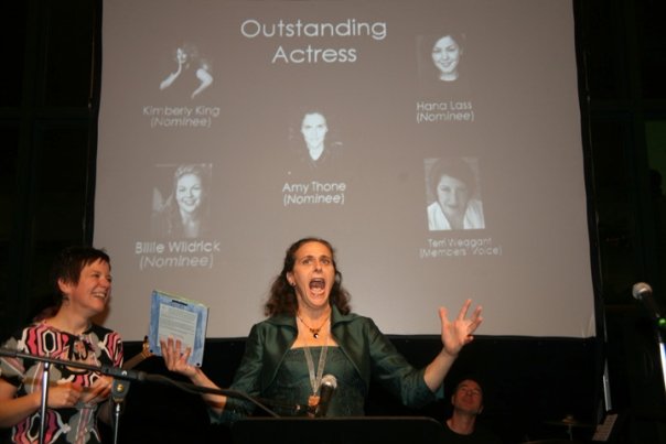 | Amy Thone seems a tad excited for winning Outstanding Actress at the 2009 Gregory Awards. Photo by Peggy Gannon. |