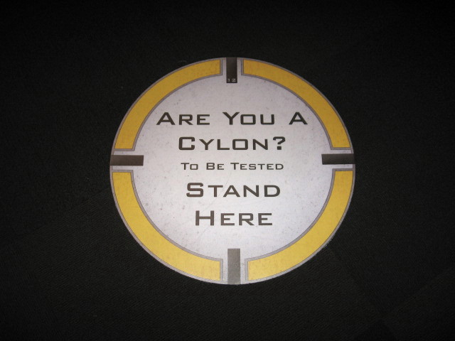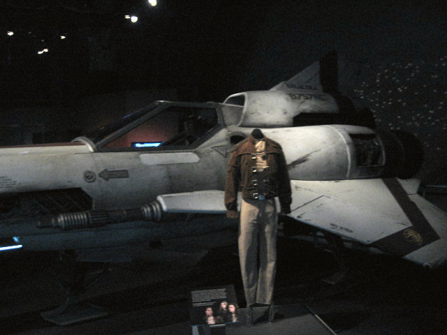As for the exhibit itself, it was entertaining and interesting. The full size Colonial Viper ships were pretty awesome, (and, they were a bitch to get into the EMP/SFM building; they had to cut a hole in the side of it…don’t tell Frank Gehry!) The Cylon Raider was less cool…very Styrofoamy and fake but since it didn’t need to be as authentic looking as the Viper, (actors had to interact with the Viper ships; the Cylon ships were only models since only the Robot Cylons used them) it’s to be expected.