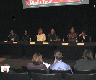 I did get to ask one question, and since I had a long list of them on my pad, I had to narrow it down to just one, so I went for broke and asked a “fun” question; all the other journalists tended to ask more serious (and generally, duller) questions. If you’ve never watched either show, the question won’t make any sense to you, but anyone who has seen either, will appreciate it: