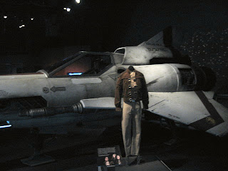 I had the opportunity to check out the new exhibit last Friday, the day before the official opening, and attended a press conference featuring several members of the cast and the producer of the rebooted BG, Ronald D. Moore, followed by a tour of the new exhibit. In a rare twist of fate, (or, probably because I knew the exhibit was coming up) I’ve been watching the dvds of the rebooted series, so I was relatively up on the whos/whats/whys/hows of the newer version. (I was 13 when the original aired, and I still watch the reruns on Retro TV; I’ve got those mothers memorized…) And, being a kind and considerate sibling, I brought along my brother, Christopher Strangeways to act as my Jimmy Oleson…also, he is a bigger Galactica fan than I am so he could fill me in on anything I didn’t understand.