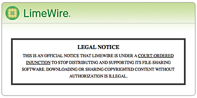 Today, an injunction filed against The Lime Group (producers of LimeWire file-sharing software) effectively killed the program, a la Napster. While Napster enjoyed a subsequent acquisition by Best Buy to legally distribute music and media, LimeWire is unlikely to see such favor, as their venture called “Spoon” has not been received with much fanfare.