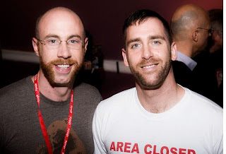 | Stars of Bear City, Stephen Guarino, (l.) and Joe Conti, (r.) Sadly, I can’t identify their friend in the middle. Photo: Mark Zimmerman. |