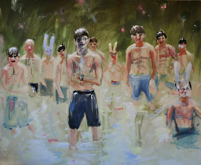 Andrej Dúbravský is a Czechoslovakian born, Slovakia based artist, remarkably accomplished for such a young age of 23, and still only halfway through his formal art education. His evolving painting style and themes, and emerging sculptural forms, are variously witty, serious, hearbreakingly personal or just plain weird, with ambiguous themes that are usually deceptive, though occasionally exactly what they appear to be. Status and power? Porn and prostitution? Sugar daddies and twinks? S & M? Yes, but no, not exactly. You’ll have to put yourself in the shoes of the bunnies.