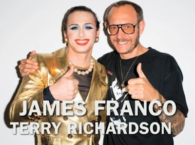 We make no secret that we love James Franco. The actor isn’t afraid to take risks with his projects and works on everything from big budget CGI movies to tiny little art films to appearing on “General Hospital” and calling it “performance art”. And, he’s always pushing boundaries and he’s not afraid to tackle queer or genderqueer parts and projects. He’s got two big movies opening this fall, Danny Boyle’s 127 Hours where he gives a tour de force performance as Aron Ralston, the real life story of the man who amputated his arm after being trapped under a rock while hiking in the wilderness, AND the bio-pic Howl, where Franco portrays iconic gay poet Allen Ginsberg, (despite not looking much like the cute but chubby writer). To promote Howl, Mr Franco posed for these provocative photos for noted photographer Terry Richardson for the cover of “Candy” the new genderqueer lifestyle magazine.