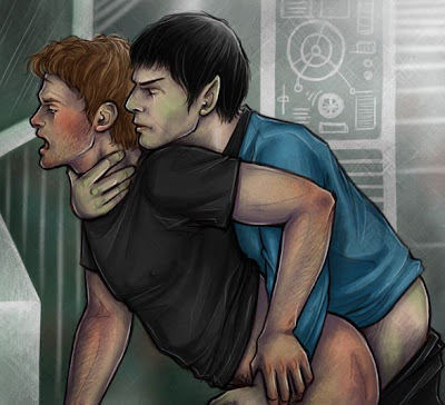 And considering the thousands of pages of NSFW Slash fiction and art out there depicting the forbidden gay love of Spock and Kirk, I don’t thing very many fans of “Star Trek” would be that horrified to discover that the current Spock actually enjoys a little “Man on Vulcan” inter species buggery.