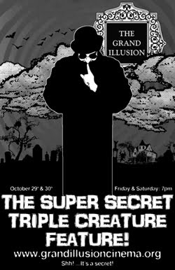 Grand Illusion presents the Super Secret Triple Feature, Friday & Saturday 7pm As the title says, the three films in this series won’t be revealed until show time. Here’s what the Grand Illusion says –