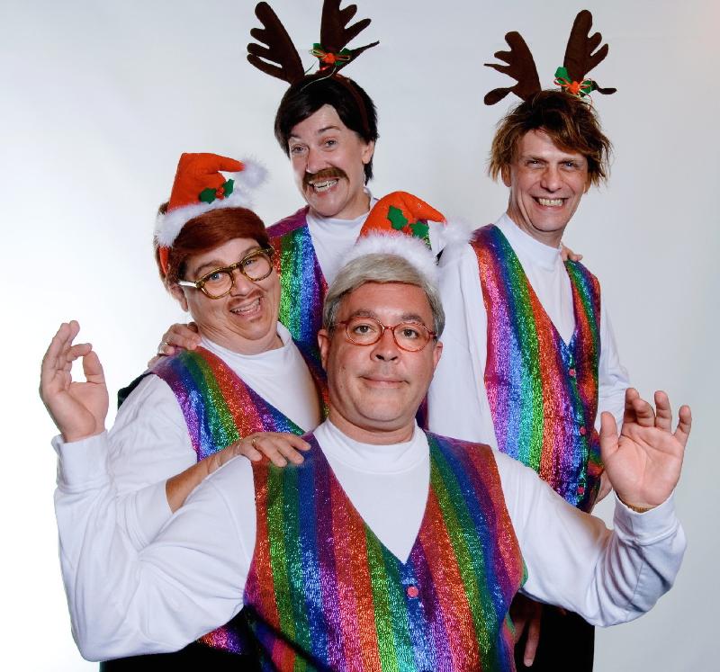 | The Sequim Gay Men’s Chorus (clockwise, from bottom: DJ Gommels, Peggy Platt, Lisa Koch, Michael Oaks) Photo by Heather Trimm. |
