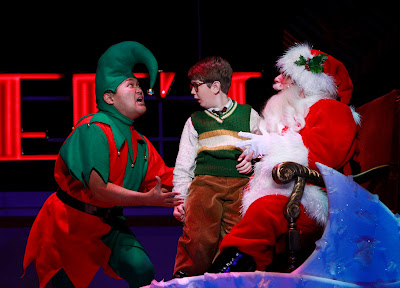 | Ralphie (Clarke Hallum) visits Santa and his nasty elf in “A Christmas Story”. Photo by Chris Bennion/5th Avenue Theatre |