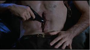 Which leads to my final chapter, Black Swan is also indisputably a horror flick, and the monster is Nina’s own body, either tortured through dance practice or transforming into the swan. The message is that our own bodies are our sources of greatest anxiety. The Fly perfectly encapsulates the nightmare of bodily transformations that you can’t control. Part of Nina’s descent into madness is discovering her own sexuality through furtive attempts at masturbation, for women discovering the parts that are inside. (Again there’s a huge argument for gyno-phobia here.) Is it any coincidence that her ultimate stab wound resembles James Wood’s gaping body cavity in Videodrome? Is it a coincidence that she’s stabbed with a piece of jagged mirror, like the glass used by Karin to cut herself in Cries and Whispers?
