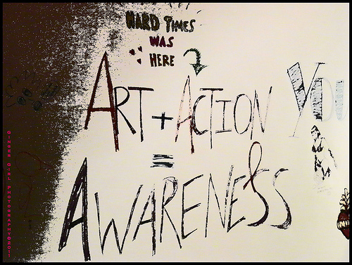 Last Thursday evening, which coincidentally was also Cinco De Mayo, the folks at Hard Times Press teamed up with the HIV Vaccine Trials Unit as well as the lovely and talented Debora Spencer, to bring you another installment in the on going “Art + Action = Awareness” series. Held at Debora Spencer’s studio in the historic 619 Western Building (slated for demolition in the fall in preparation for work on the viaduct), and on the night that Pioneer Square normally has its monthly artwalk, this event attracted quite a diverse and colorful crowd.