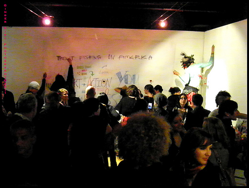 There was a wide variety of art on display at the event. A live body painting installation, wearable art in the form of hats and hairclips, a display of technicolor poster prints from the Sin On Heels Tour (featuring local celebutantes Sydni Deveraux and Fuchsia Foxx among others), and a huge interactive graffiti wall, all added to the events unique vibe. Hard Times alumni, DJ’s L.A. Kendall, Skiddle, JT Hooker and Tony Burns chipped in to lend their distinctive musical perspectives to the evenings soundtrack.