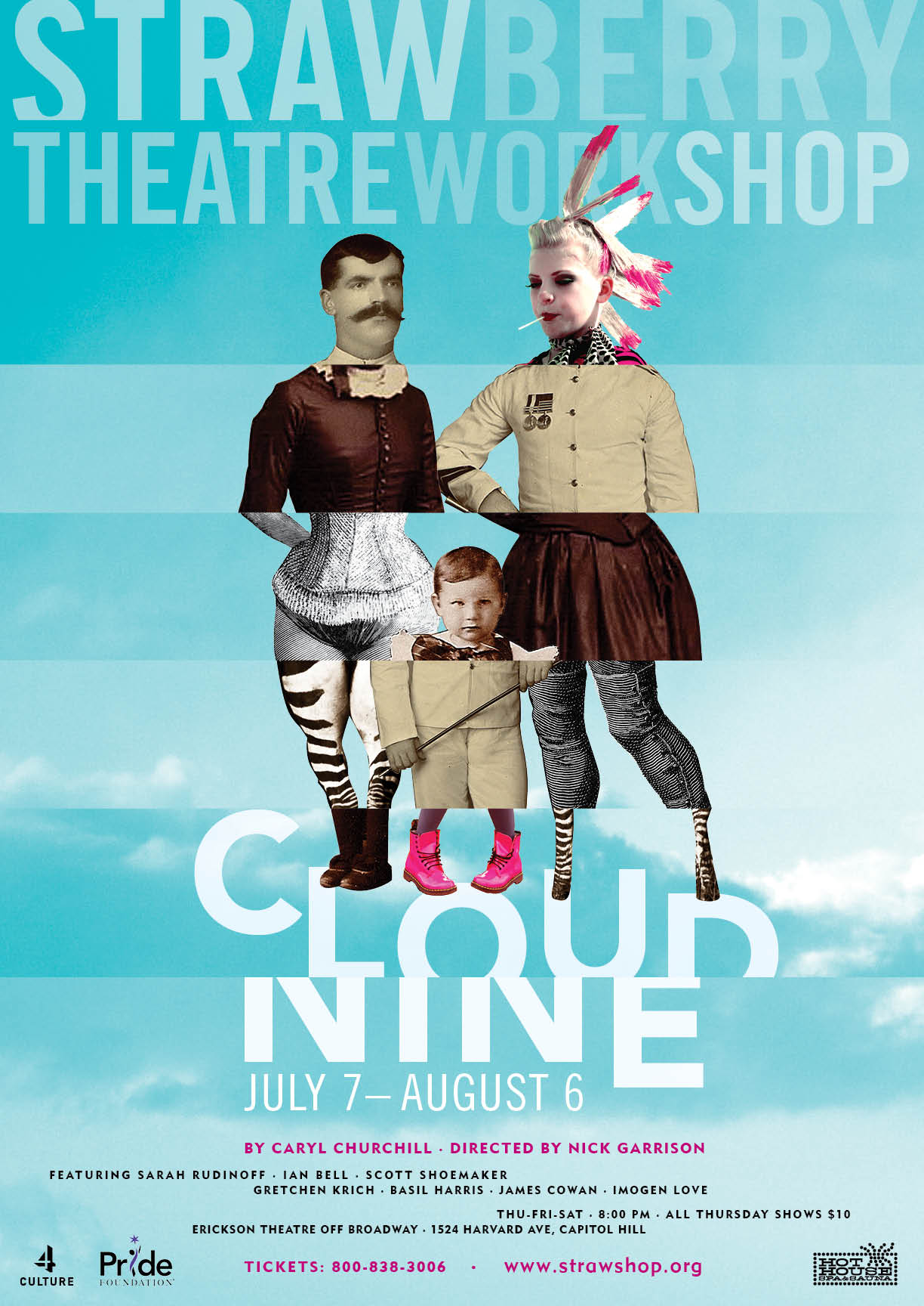 Our big pick for the day, (and for the next four weeks Thurs-Sat) will probably be Strawberry Theatre Workshop’s production of Caryl Churchill’s Cloud Nine which opens tonight, Thursday July 7 at the Erickson Theatre (behind the Egyptian on Harvard). A gender bending comic farce, with some dark undertones, Ms Churchill’s play examines the politics of gender, sexuality, race and colonialism…and still manages to be funny as hell. It doesn’t hurt that nearly every character in the play explores same-sex love at some point…and/or lust and there’s more cross-dressing in this play than an episode of “Benny Hill”…