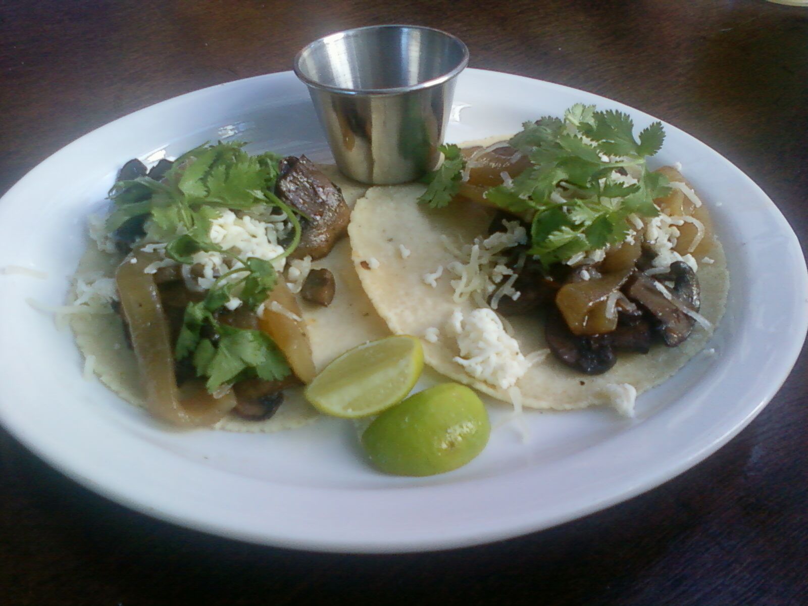 They have a ton of different tacos including pork, brisket, chicken, mushroom, and yam. $5 for 2 tacos. We had the chicken, brisket, and yam.. All the tacos get a thumbs up. The yam tacos totally rocked!