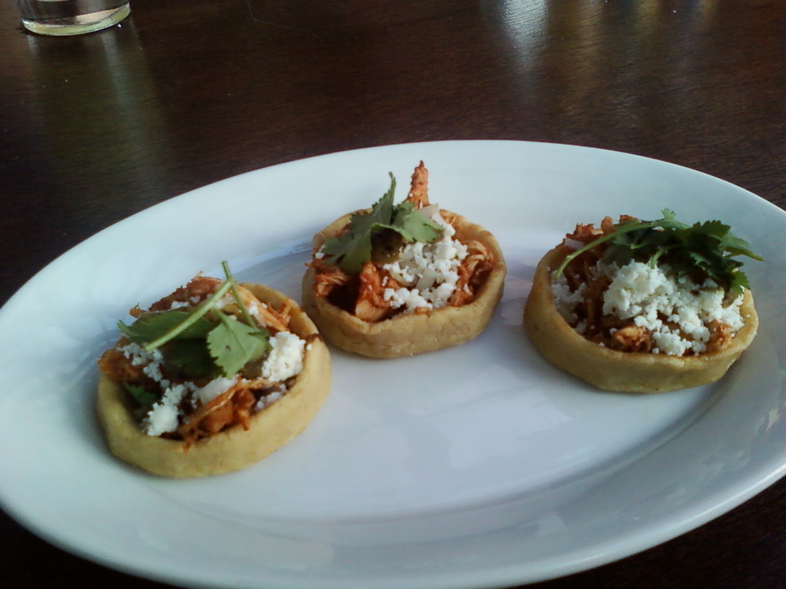 Mini Sopes came 3 per order for $5. The menu described the dish as “corn masa boat”s not sure about boats. They reminded us of tartlets. The shell was a little too crunchy for our liking.