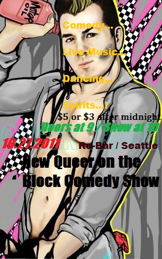 The last time that I performed standup was five years ago when I hosted the annual QLaugh-off, a fundraiser for Eugene’s Q Center (LGBTQ Community and Resource Center), and the audience every year packed the house of Cosmic Pizza in downtown Eugene. Five years later and I’m here in Emerald City with a comedy routine to debut. “New Queer on the Block Comedy Show” at Re-Bar is first and foremost a theatrical presentation and secondly it’s my birthday celebration. What is to be expected and what the final outcome is out of my hands! It’s live show, my peeps!!! Am I tooting my own horn about this event that I’m producing and performing in? You betcha!