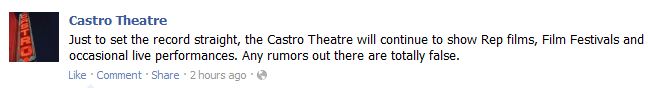 More developed…The Castro released this announcement via its Facebook Page: