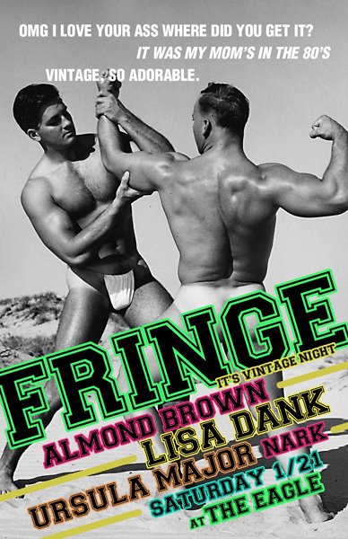 Tonight at The Eagle, Fringe returns for it’s first installment of the new year. In anticipation of the cold they’ve gone with a theme that works well for layers and warming accessories- Vintage! So really dig through that closet and pick an era, a decade, mix em’ all up or just get straight up swanky. Of course, it is the Eagle, they will still let you check down to your skivvies at the door if you please.