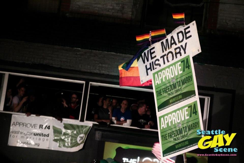 The faces of the people in these photos speak for themselves. A lot of joy and happiness and relief after a season of hard work and determination and faith that equality IS possible for all. Referendum 74 passed giving everyone in the State of Washington the right to marry the person they love. Marriage equality measures also passed in Maine and Maryland and a step forward was made in Minnesota. Wisconsin’s Tammie Baldwin became the first out lesbian woman elected to the United States Senate. The majority of candidates who made ridiculous and offensive misogynistic comments about rape and women’s reproductive rights were defeated. Positive steps were made in Colorado and Washington State for the legalization of marijuana. President Barack Obama was elected to a second term.